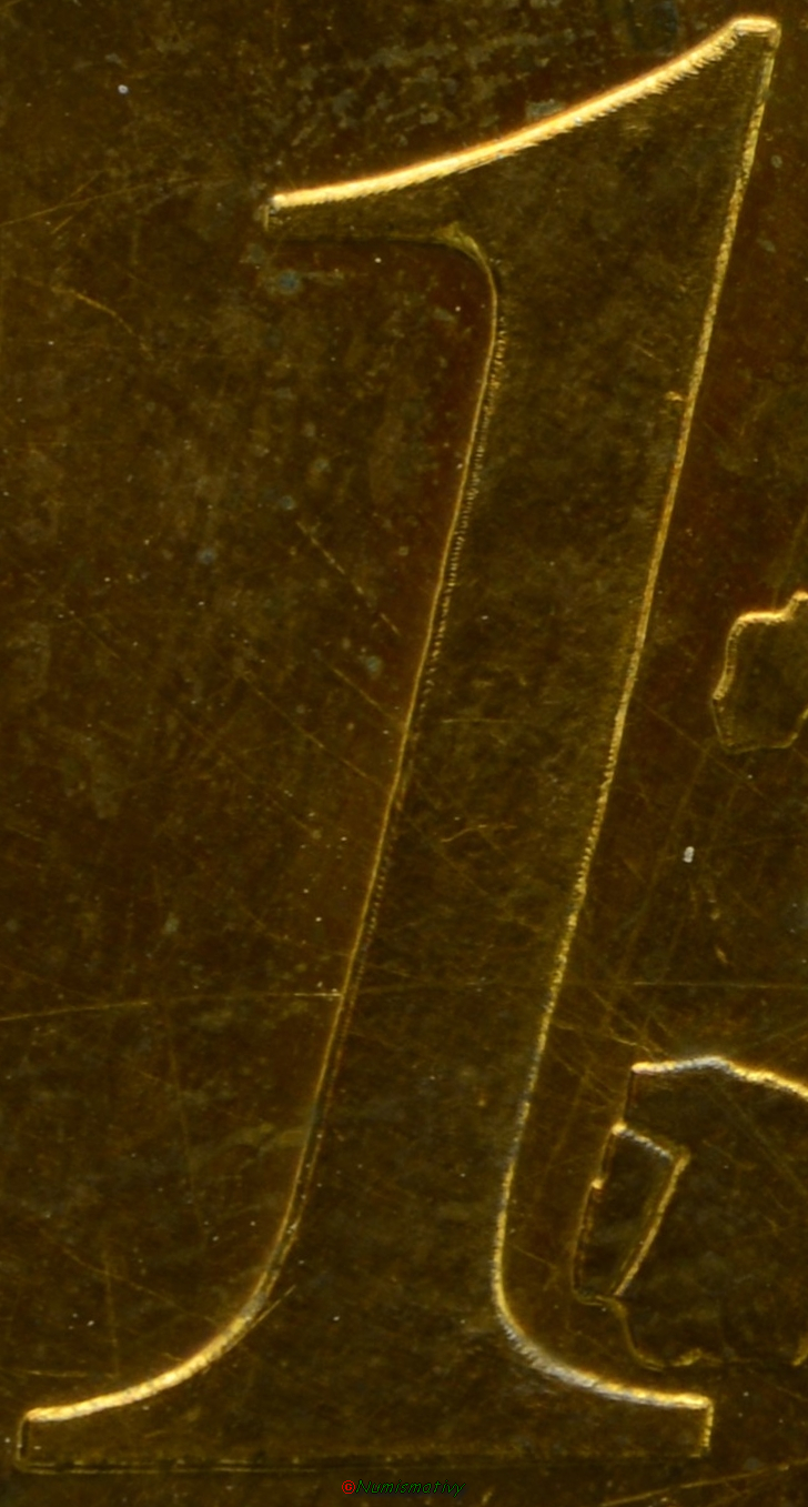 Tranche : lisse Diamètre : 30mm avant la frappe (légèrement supérieur après la frappe car il n'y avait pas de virole : 32 à 33.5mm) Magnétisme : NON Poids : 12.52 g. Matériau : jaune |
