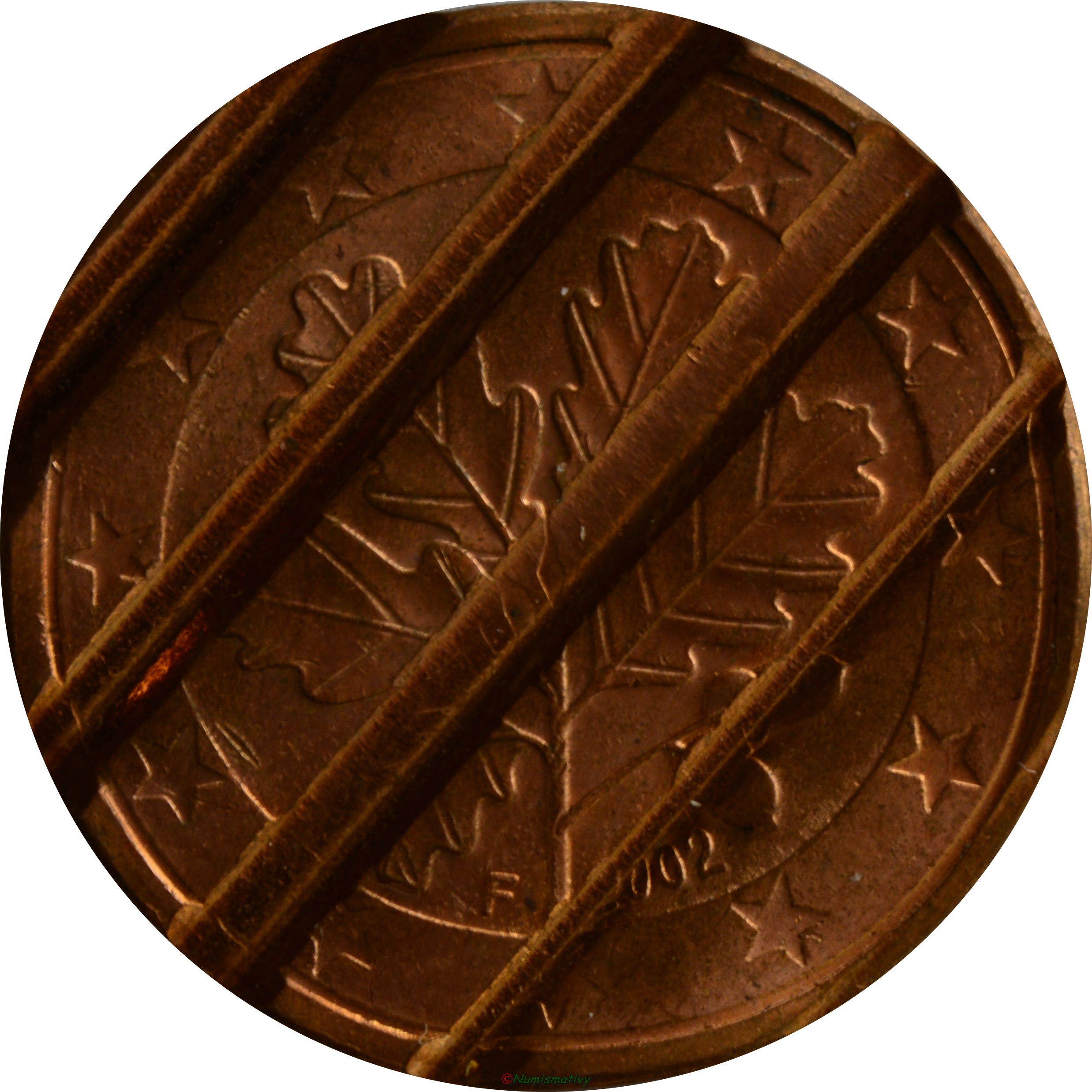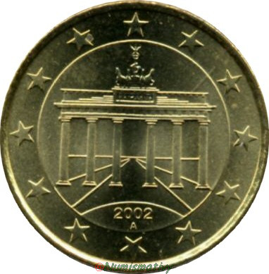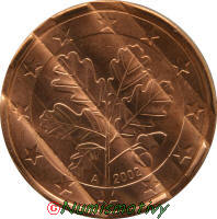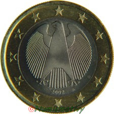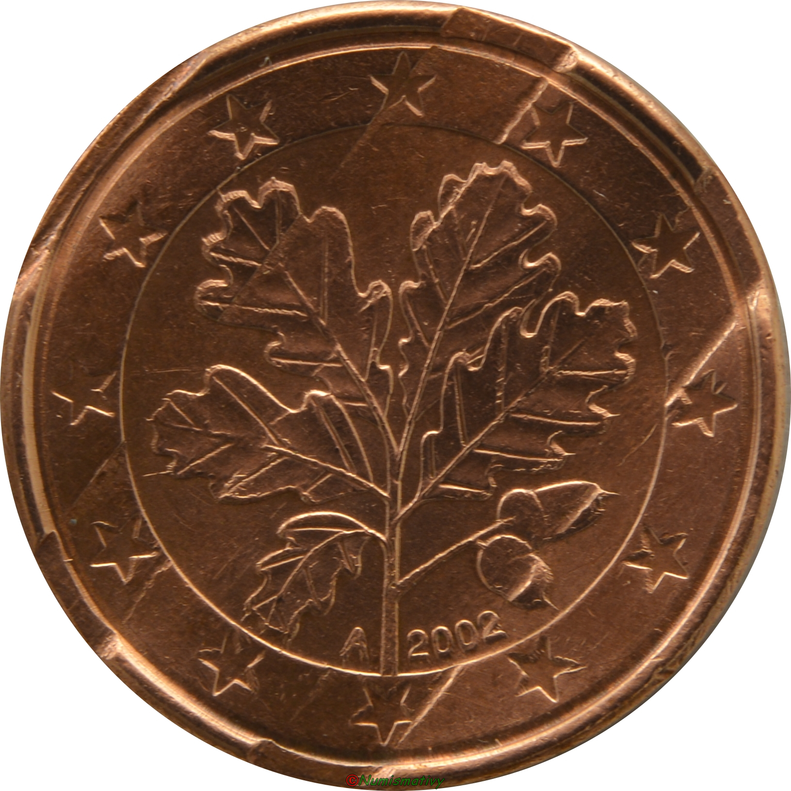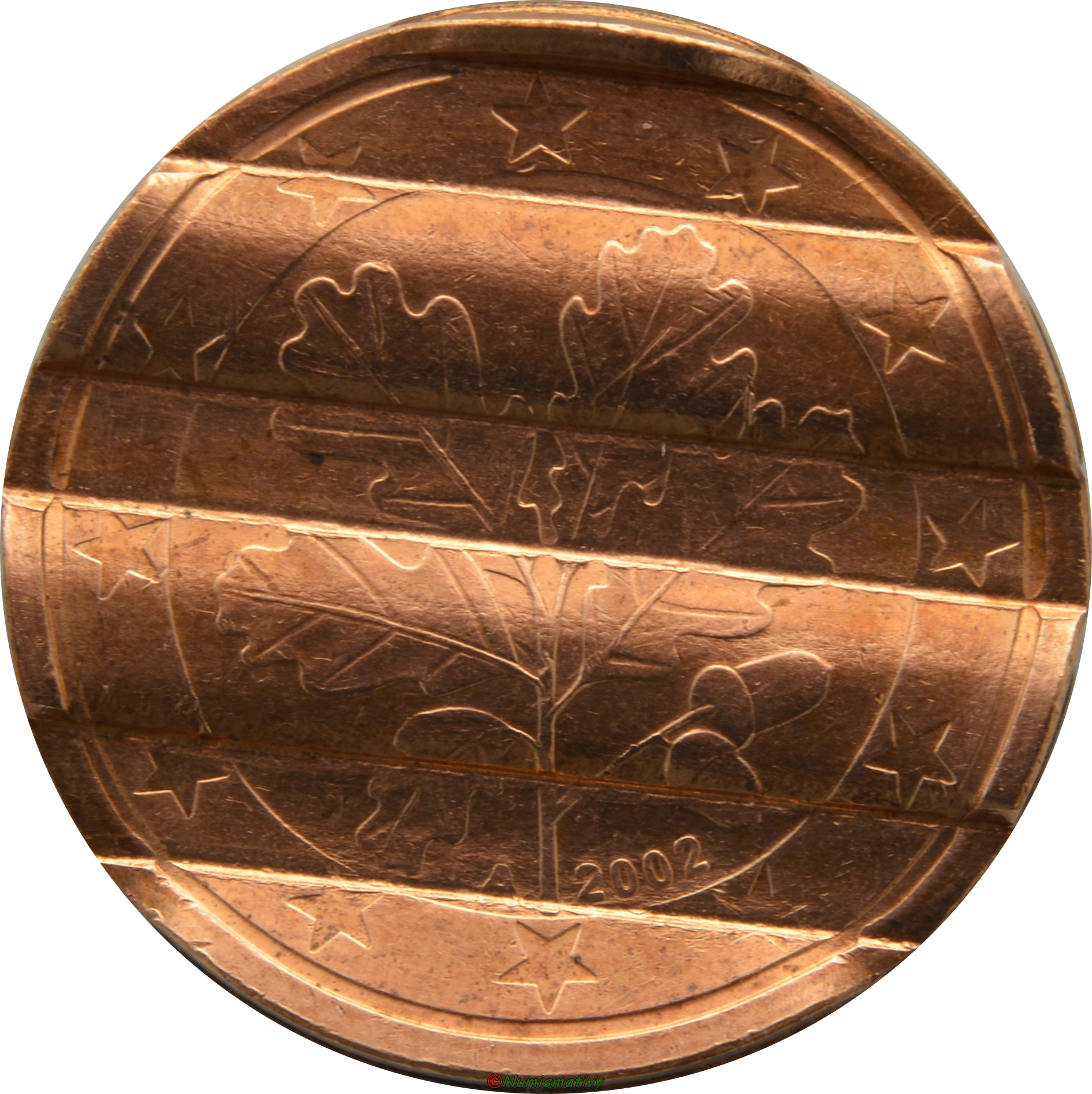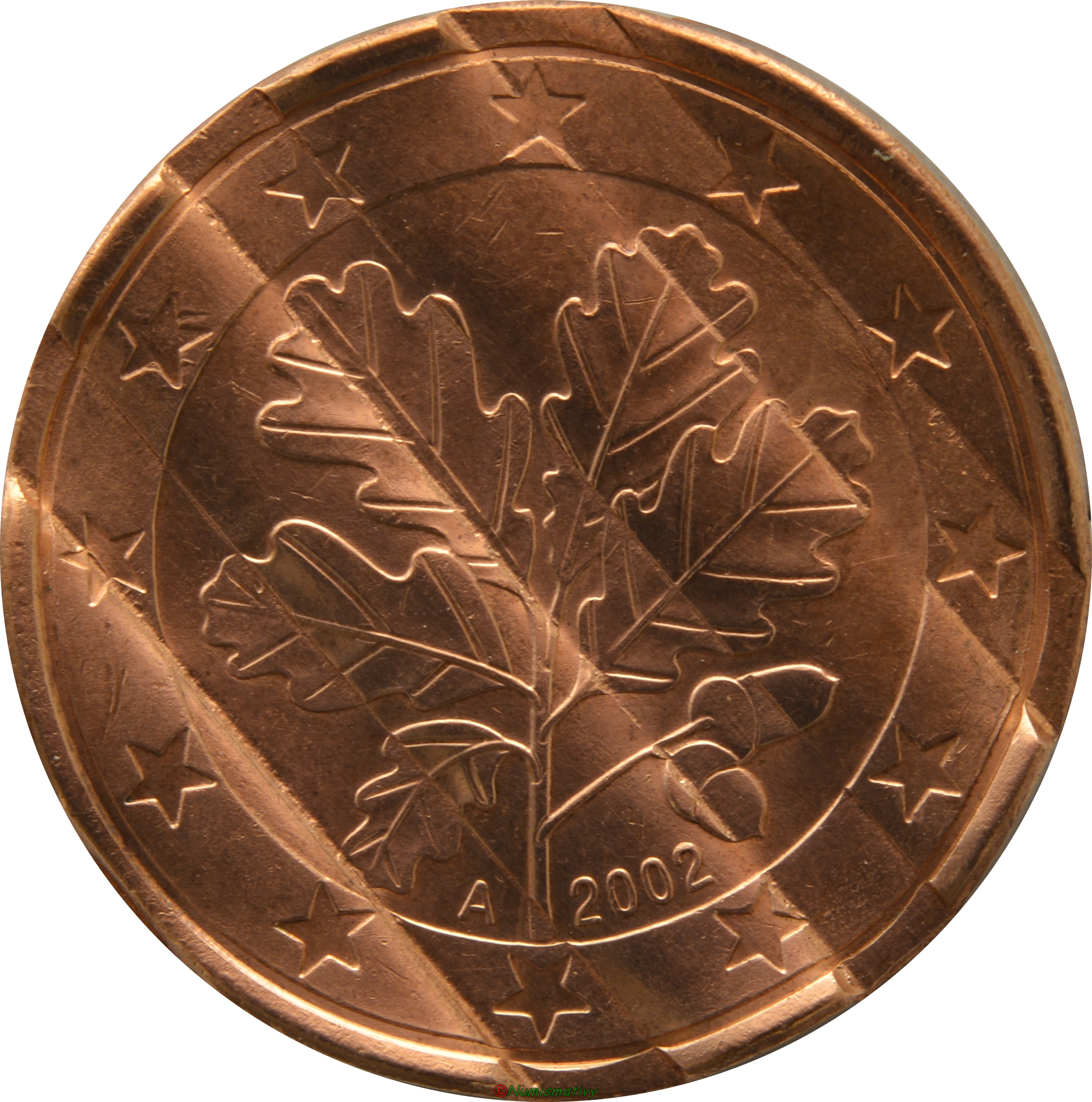 Afin que la légende (la devise allemande) passe sur la circonférence de ce flan de 2€ plus petit qu'une 5DM, la police de caractère est plus petite et il y a 1 seul symbole de l'aigle à la place des 6 sur la 5DM.