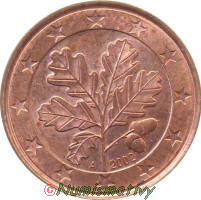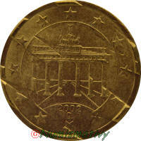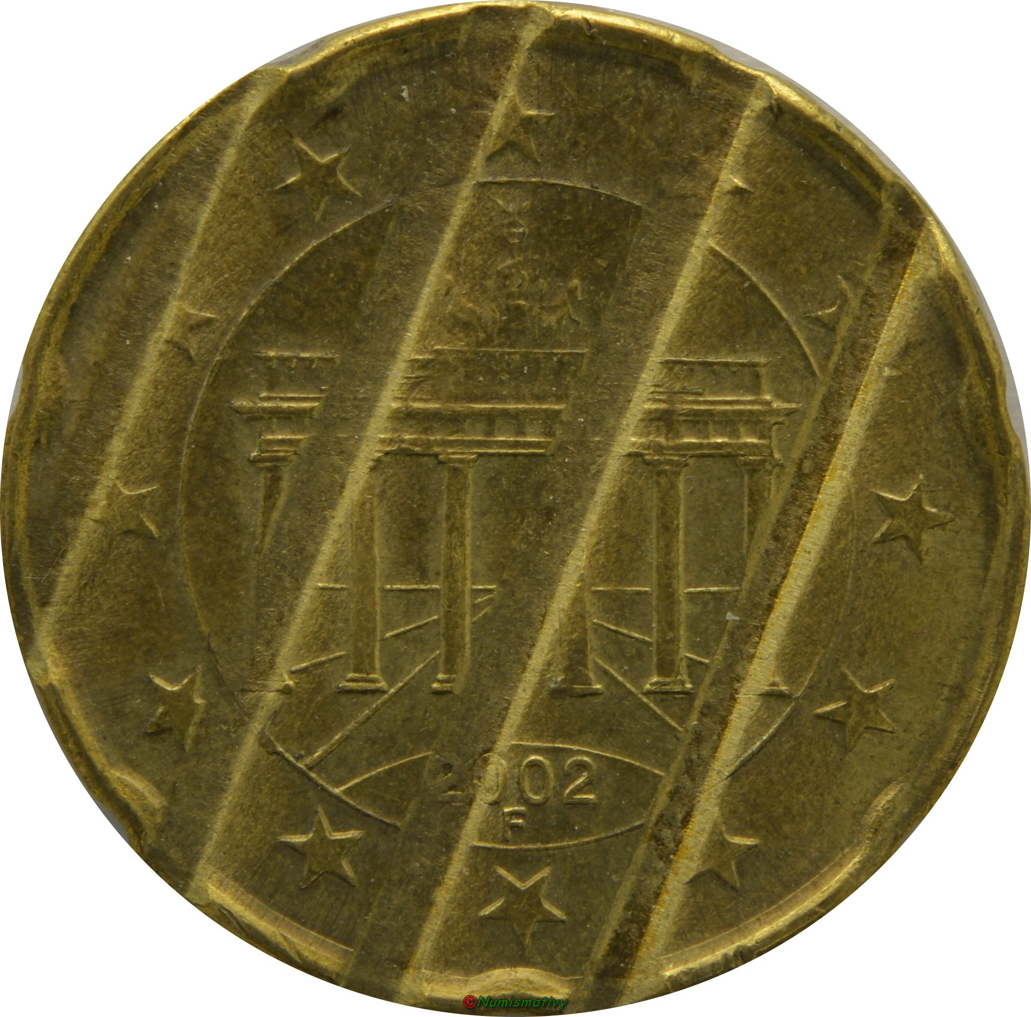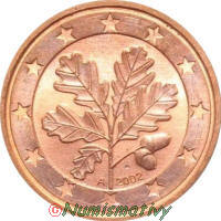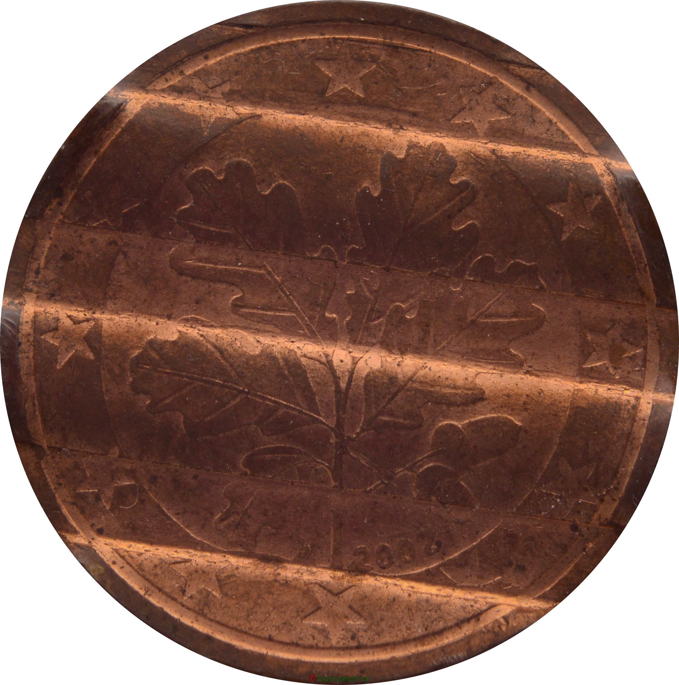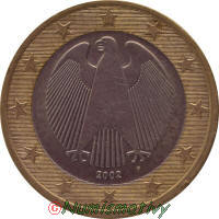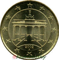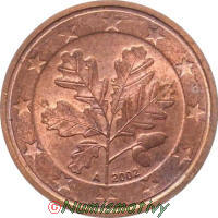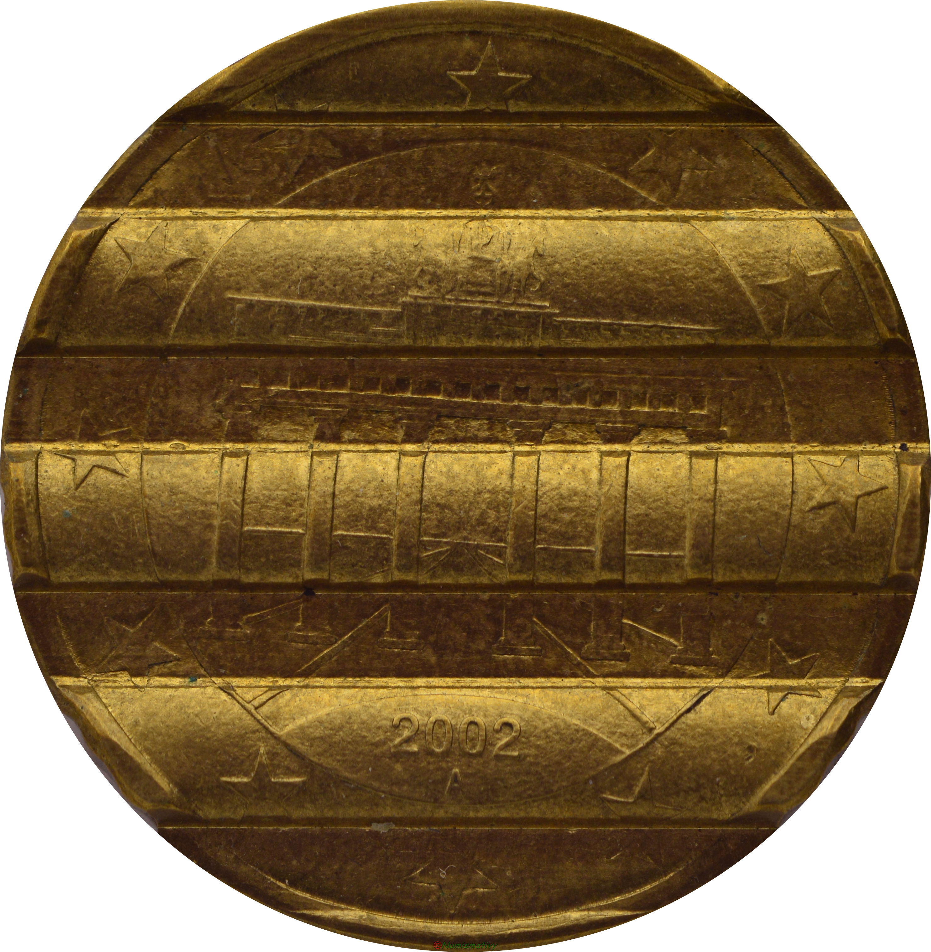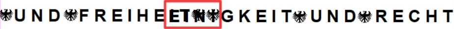 Afin que la légende (la devise allemande) passe sur la circonférence de ce flan de 2€ plus petit qu'une 5DM, la police de caractère est plus petite et il y a 1 seul symbole de l'aigle à la place des 6 sur la 5DM.