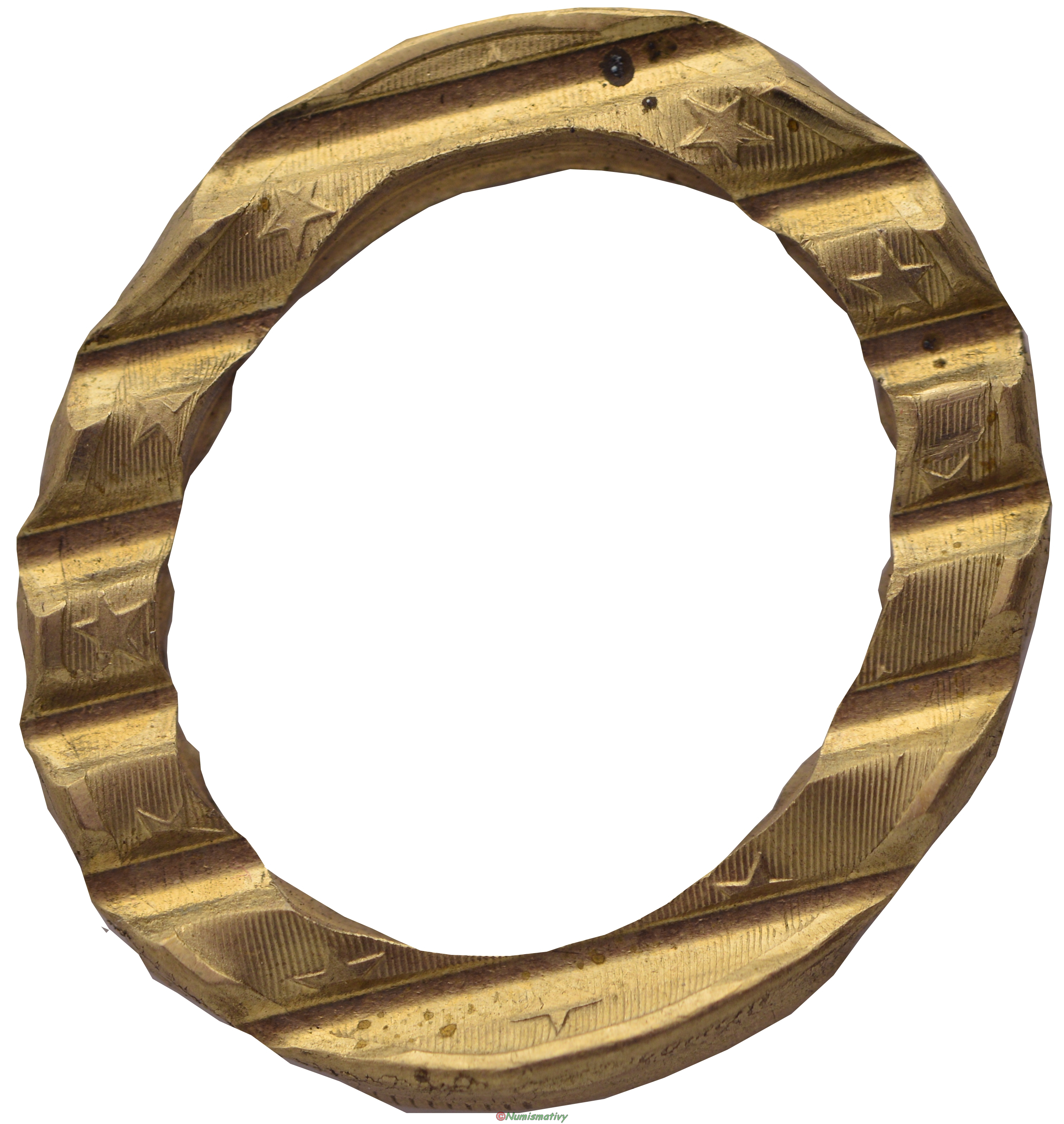 Voici une couronne difformée de 1 euro, mais l'insert à disparu, donc impossible de connaitre l'atelier...