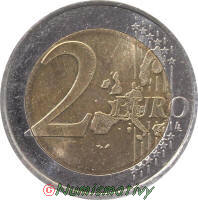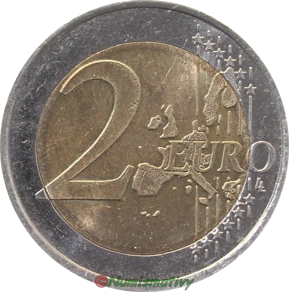Cette 2 euro est un véritable essai, elle ne comporte ni date, ni lettre d'atelier. et sa tranche à stries fines, porte l'inscription des 5DM (Deutsh Marks).