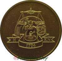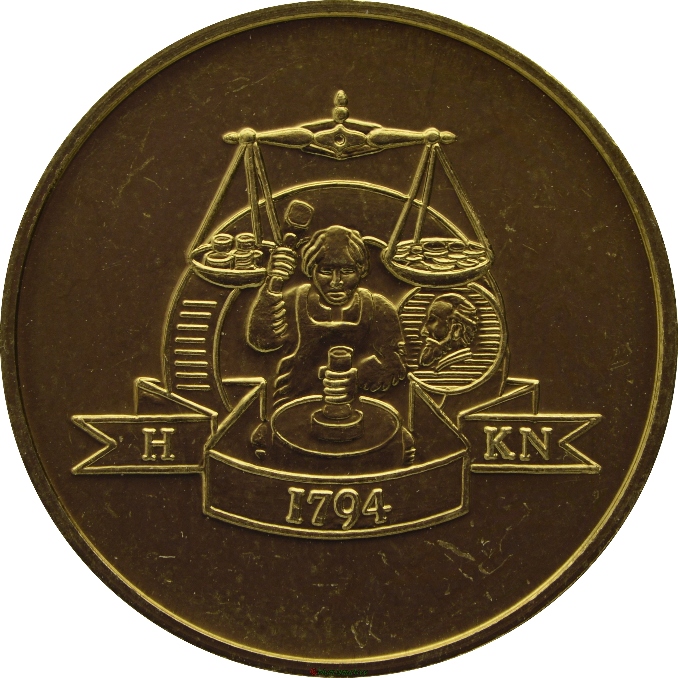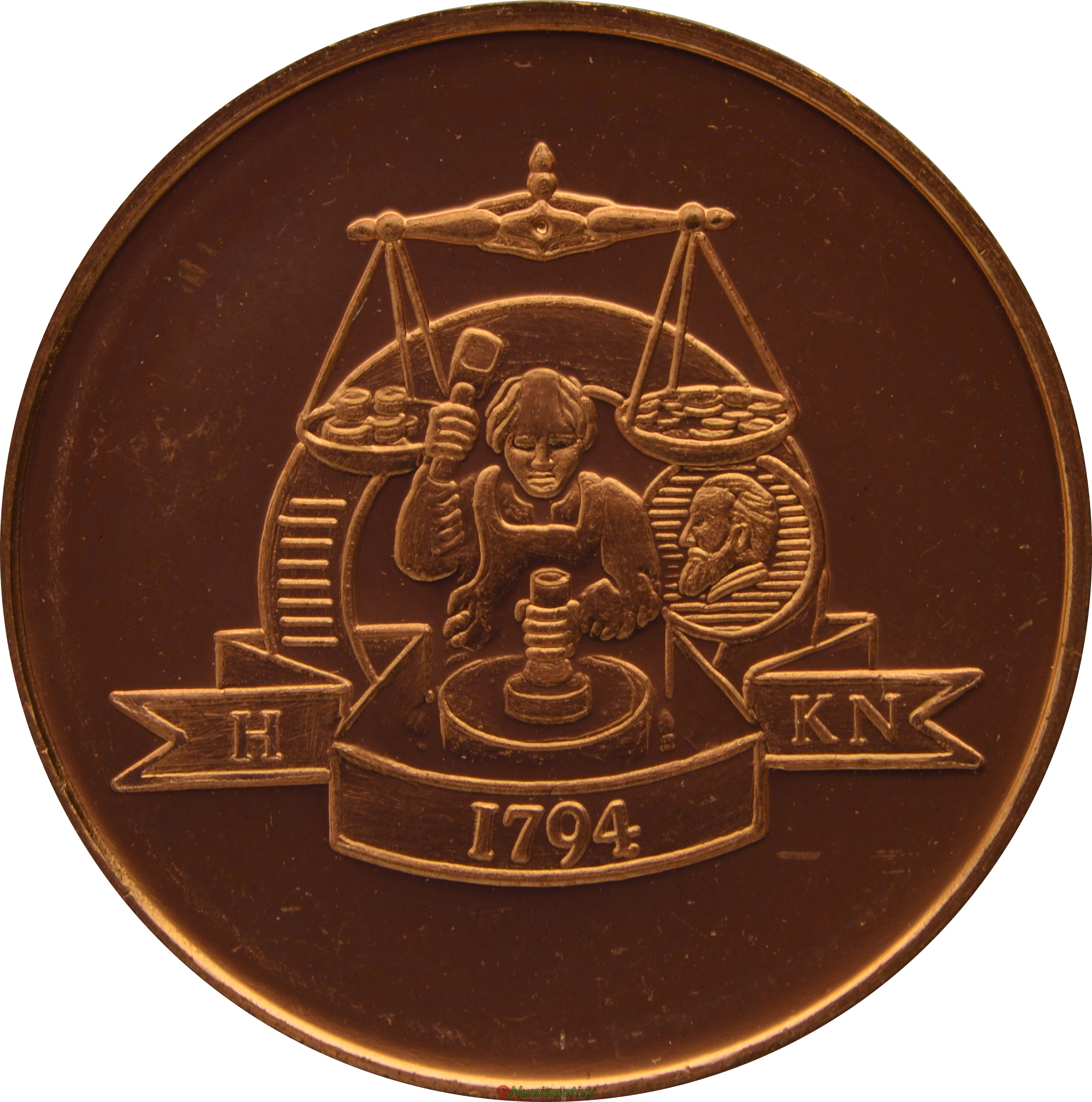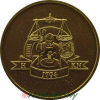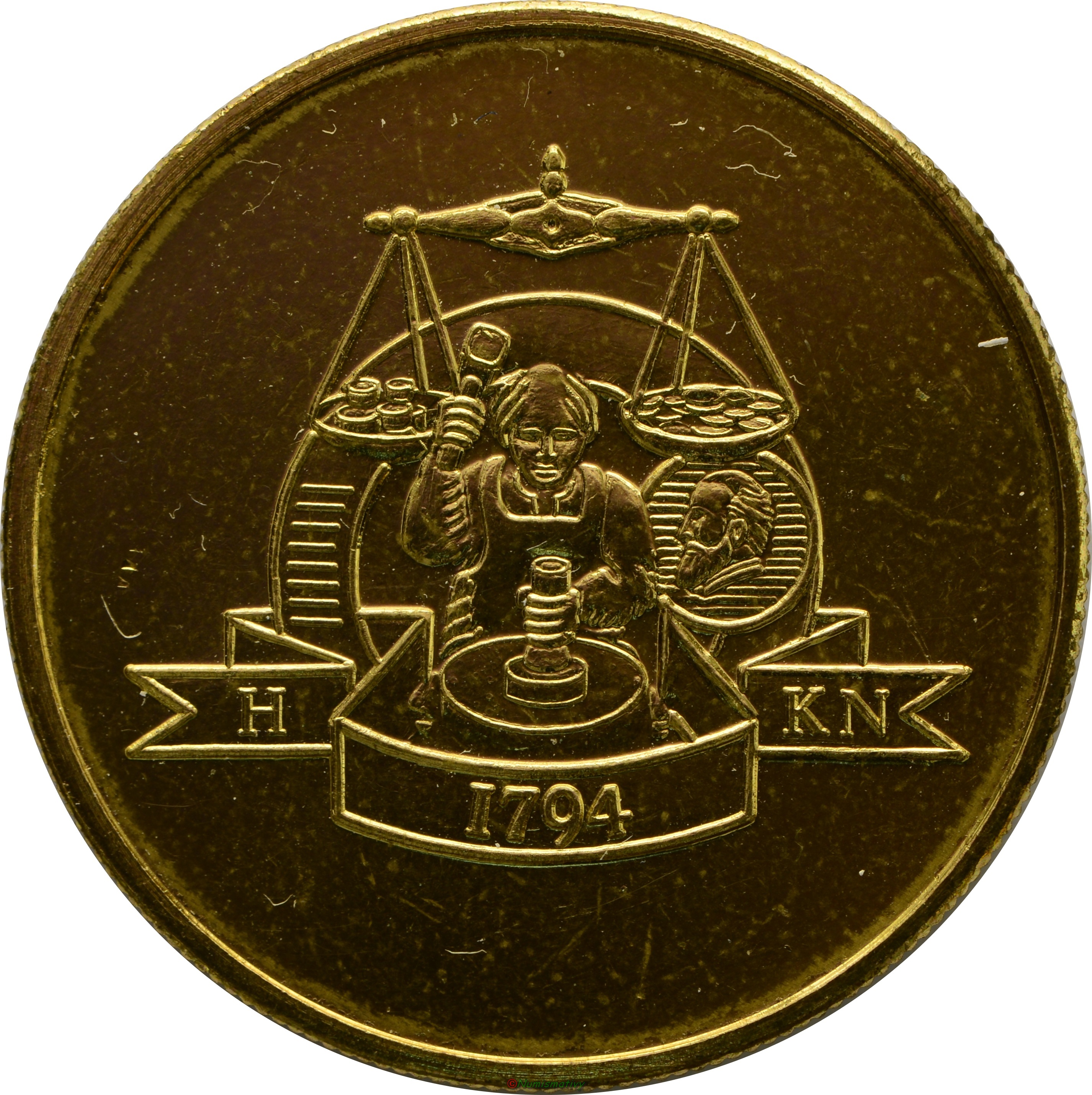 L'avers des huit pièces de monnaie montre l'insigne ou le logo de l'Hôtel des monnaies de Birmingham; un monnayeur étant sur le point de frapper une pièce de monnaie à la main, avec un balancier derrière. Avec l'inscription " H 1794 KN". |