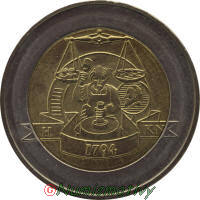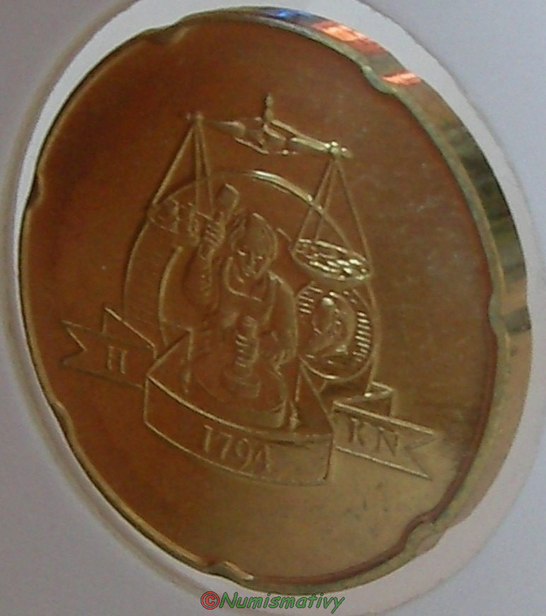Voici une 50cent avec le poids adopté, nous avions trouvé jusque là uniquement des poids réduit à 6.9g (les textes officiels de Mai 1998 indiquait que les 50cent seraient avec une tranche à stries fines et un poids de 6.9g), mais voici une version bien plus rare à 7.8g, soit le poids adopté (d'après les textes officiels de février 1999). Cette version à été frappée un peu après le 08 Juin 1999 d'après les documents techniques trouvés avec cet exemplaire. Par contre la tranche est encore à stries fines et non à cannelures larges comme la version finalement adoptée.