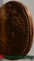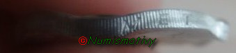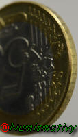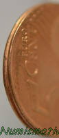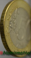 c) Pièce Euro frappée sur un flan destiné à recevoir la même valeur faciale euro, mais avec un flan mal préparé :