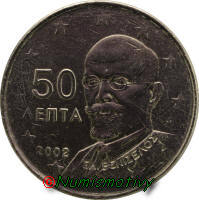 GRECE : Frappé sur un flan de 1Franc Français à l'époque la France avait obtenu le marché pour frapper les pièces de 50cent€ de Grèce. |