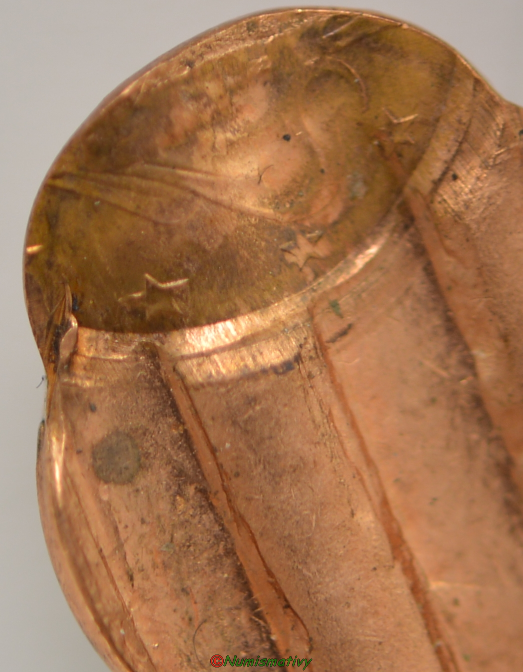 Il peut arriver de trouver des pièces dont la frappe est décalée par rapport au flan, en fait l'erreur vient du positionnement du flan lors de la frappe. Soit le flan est arrivé trop tôt soit trop tard, soit il s'est mal positionné dans son emplacement. Les décalages légers paraissent simplement inesthétiques tandis que les décalages de plus de 50% sont surprenants.