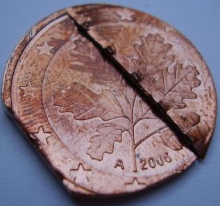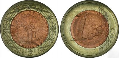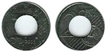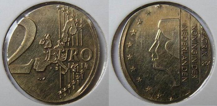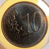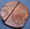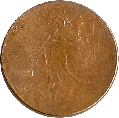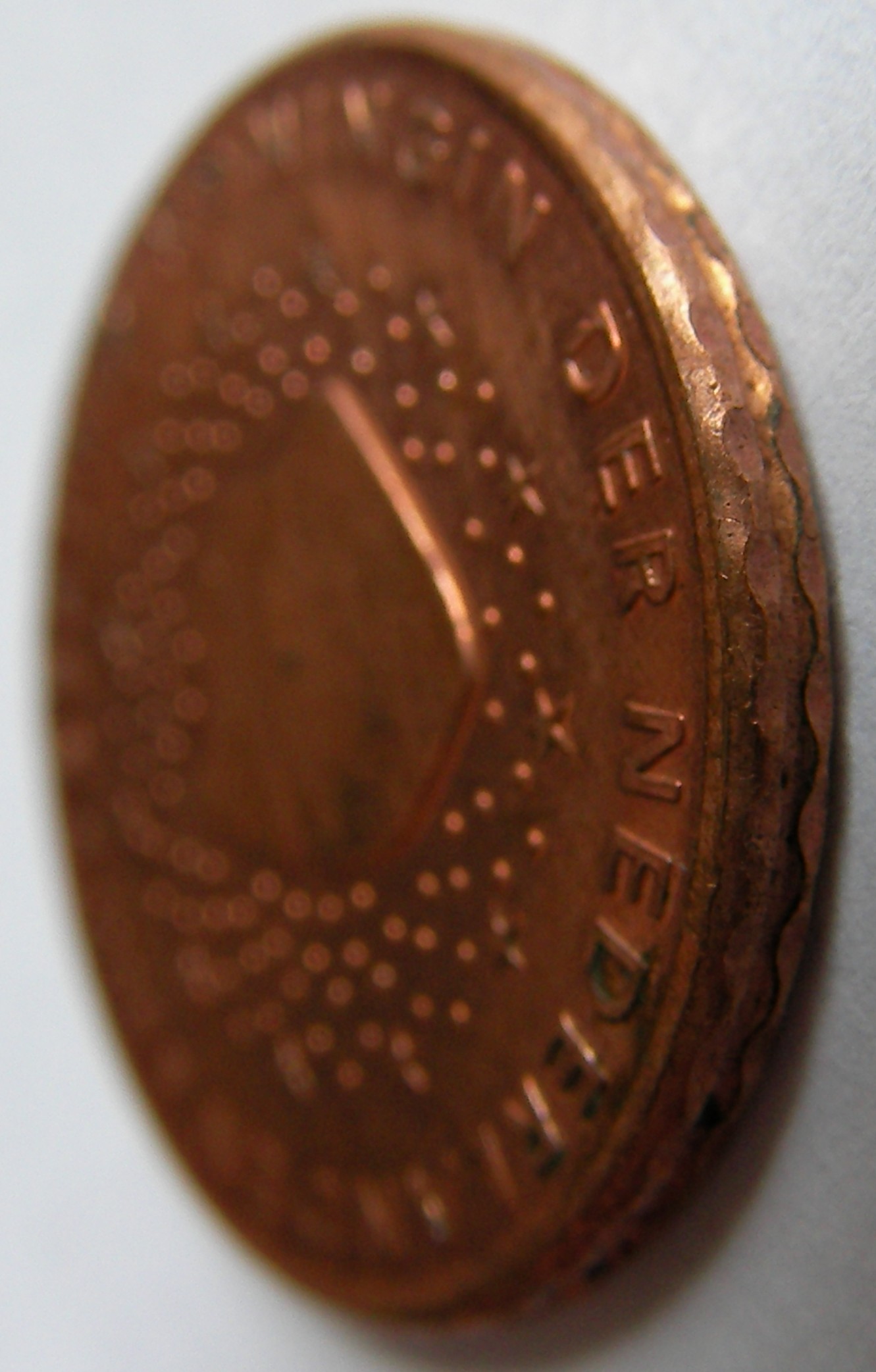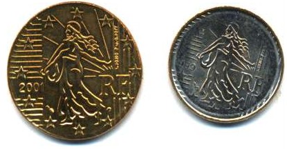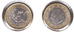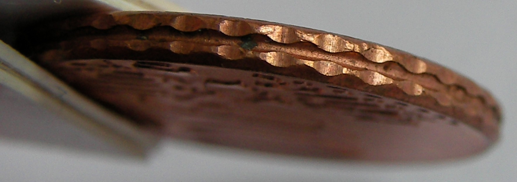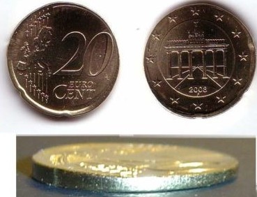 ![]() | Il peut arriver lors des transports entre les différents ateliers de la production qu'un flan de 5cent se retrouve par mégarde dans le bac des 10cent, on donc lors de l'approvisionnement pour la frappe, ce flan non adapté va recevoir l'empreinte d'une 10cent... Ce genre d'erreur donne parfois des résultats surprenants. | ![]() |
