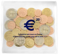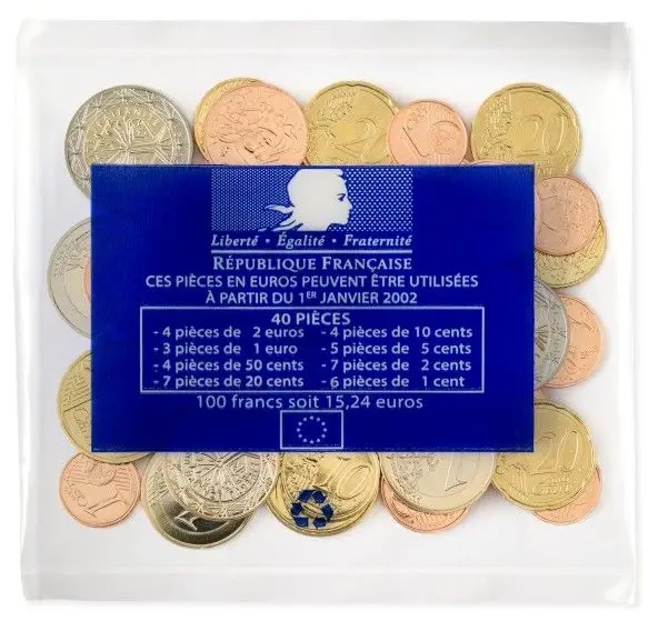 | 2021 | 20 000 sachets Édition 20ème Anniversaire - Series BU millésime 2021 sachet commémoratif En 2021, afin de célébrer l’anniversaire des 20 ans du Starter Kit et de la mise en circulation des premiers euros, la Monnaie de Paris a décidé de rendre hommage aux premiers euros en circulation en rééditant le starter kit original au millésime 2021. Cette réédition reprend les différents traits du starter kit original. Celui-ci contient 40 monnaies millésimées 2021 en qualité Fleur De Coin pour une valeur faciale de 15,25€. Le revers du starter kit présente le sigle € ainsi qu’une mention spécifique au 20ème anniversaire du produit. source : Monnaie de Paris |