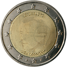 Sur le côté gauche, l'effigie du Grand-Duc Henri superposée à l'effigie de