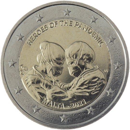 l’inscription « MALTA - 2021 ». Les douze étoiles de l’Union
