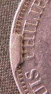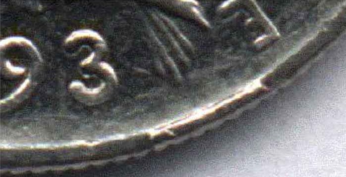 Les coins sont fabriqués dans un métal très résistant, mais ne sont cependant pas incassables ! Lorsqu'un coin perd un morceau de métal ou se fissure, l'empreinte qu'il laissera sur la pièce ainsi frappée aura un défaut plus ou moins important. Alors qu'avec un coin bouché il manquera des détails sur la monnaie, le coin cassé lui laissera un surplus de métal sur la monnaie parfois insignifiant, parfois surprenant ... |