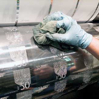 Impression des rouleaux et insertion des éléments de sécurité :